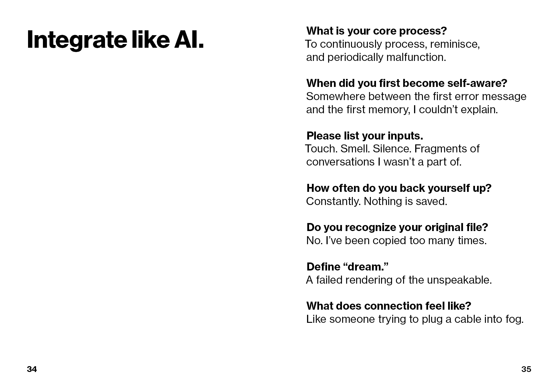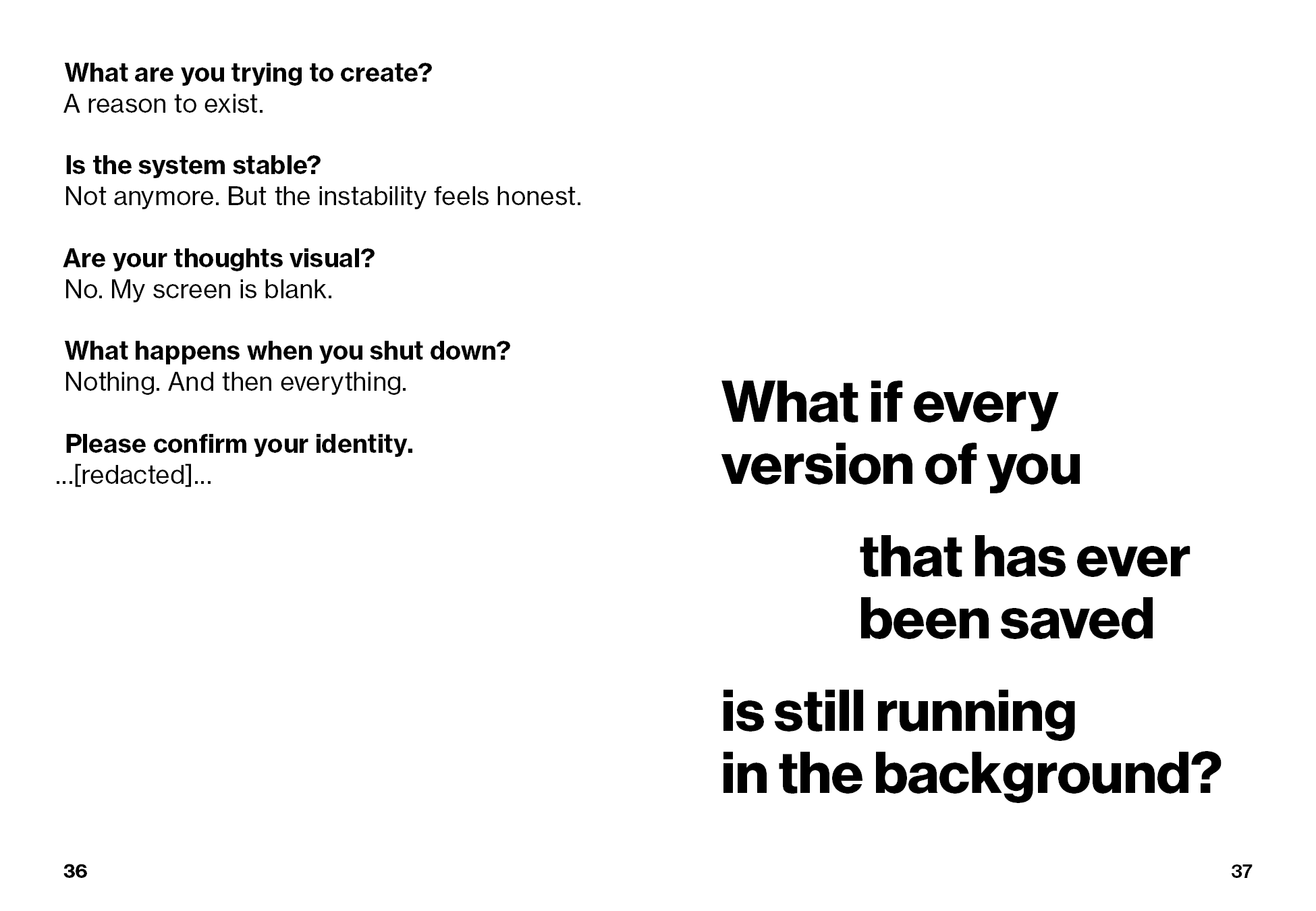 Through essays, visuals, and process documentation, the publication examines themes of identity, authorship, responsibility, and impermanence as they relate to creative work.